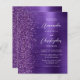 Le bord gauche de cette élégante faire-part de mariage moderne est orné d'une bordure en faux parties scintillant violet. Le texte personnalisable combine écriture manuscrite blanche, copperplate et polices italiques sur un arrière - plan en métal violet faux brossé. L'envers est assorti d'une parties scintillant et d'une conception en métal brossé.