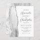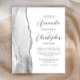 Le bord gauche de cette élégante faire-part de mariage moderne est orné d'une bordure en aquarelle grise et blanche ornée d'une parties scintillant en faux argent. Le texte personnalisable combine des polices de script et sans serif en gris fusain sur un arrière - plan blanc. L'envers est assorti d'un design d'agate gris, blanc et argent.