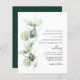 Eucalyptus Greenery Fête des mariées Script Invitation modèle vous pouvez facilement éditer pour votre mariage et il est parfait pour un mariage élégant chic. Doté de feuillage d'eucalyptus et de typographie moderne sur arrière - plan blanc. À l'envers se trouve un arrière - plan vert émeraude clair avec une sensation boho