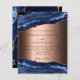 Une faire-part de mariage moderne et tendance. Porte d'or bleu et rose, arrière - plan en pierre de marbre. Personnalisez et ajoutez vos noms et les détails.