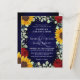 Cette création de mariage présente de jolies roses rouges peintes, des tournesols et des branches d'eucalyptus sur un fond en bois sombre rustique. Des variations de ce design, différents types de papier (y compris des options économiques), ainsi que des produits coordonnés sont disponibles dans notre boutique, zazzle.com/store/doodlelulu. Contactez-nous si vous avez besoin de cette création sur un produit spécifique pour créer votre propre article unique assorti ! Merci beaucoup d'avoir consulté une création DoodleLulu par 2 june bugs !