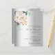 Un arrière - plan faux argenté. Fleur blanche, fleurs, végétation eucalyptus. Personnalisez et ajoutez vos noms et détails. 1 feuille = 1 invite imprimé bord à bord.