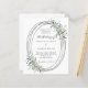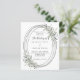 Un arrière - plan blanc. Un cadre en faux argent ovale décoré de vert sage. Personnalisez et ajoutez vos noms, détails. Texte noir. 1 feuille = 1 invite imprimé bord à bord.