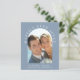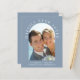 Élégant et économique faire-part d'élopement ou d'annonce de mariage privé et d'invitation à la réception bleu poussiéreux. Le devant présente votre photo de mariage dans un cadre en arche et "Happily Ever After" en typographie blanche élégante. Ajoutez vos prénoms, date et lieu de mariage. Au verso, personnalisez votre annonce et invitation et ajoutez vos noms dans une écriture semblable à une signature.