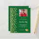 Une invitation moderne et élégante à Graduation Party. Un arrière - plan vert de forêt décoré de faux confettis d'or. Personnalisez et ajoutez une photo, un nom et des détails de la fête. Texte blanc. 1 feuille = 1 invite imprimé bord à bord.