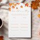 Ajoutez une touche amusante à votre fête avec cette Fête des mariées d'automne personnalisée Guess The Age Game ! Parfait pour des réunions confortables, cette activité charmante s'intègre parfaitement à vos idées de douches nuptiales préférées. Que vous planifiez une douche nuptiale d’automne rustique ou que vous cherchiez une chute dans les idées de douche nuptiale, ce jeu apporte des rires et des souvenirs doux à la journée spéciale de la mariée.
