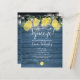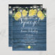 Doté de citrons verdoyants et de jolies lampes à cordes sur un arrière - plan en bois rustique bleu, cette invitation amusante à budget de douche nuptiale peut être personnalisée avec vos informations spéciales événement. Conçu par Thisisnotme©