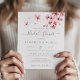 Une élégante invitation à la douche à nuptiale florale moderne avec des fleurs de cerisiers couleur rose vif et de la calligraphie moderne sur une texture de papier fait à la main.