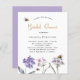 Un arrière - plan blanc. Décoré d'abeilles et de fleurs sauvages peints dans le violet et le rose. Personnalisez et ajoutez un nom et des détails du parti.