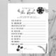 Faisant partie de la collection Film Noir, voici How Well Do You Know The Bride Game est le TRUE TEST sur l'invité d'honneur. Répondez autant que vous pouvez et la personne avec les victoires les plus correctes! Vous, l'hôte, déterminerez le temps alloué aux invités pour jouer. *Demandez à l'invité d'honneur de répondre aux questions le matin du (ou avant la journée)! Tout le texte est personnalisable pour correspondre parfaitement aux détails de votre occasion ↣ cliquez simplement sur le bouton "Personnaliser".