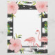 Petite impression avec des rayures noires et blanches désordonnées, des flamants roses et des fleurs.