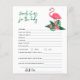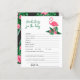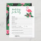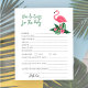 Baby shower invitation design avec flamingo rose avec frondes de feuilles de palmier vert luxuriant et fleurs d'hibiscus tropical. "Aloha Baby". Un motif à fleurs tropicales aux couleurs arrière - plans noires habille le dos de la carte.