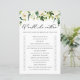Que ferait la mariée ? | Ajoutez cette carte de jeu de douche nuptiale amusante et ludique à votre événement. Cette carte de jeu personnalisable "Voudrait-elle Plaire" présente des illustrations aquarelle de fleurs blanches et de verdure. Personnalisez en ajoutant vos propres détails. Cette carte de jeu pour deviner la nage à fleurs blanches est parfaite pour les douches nuptiales hivernales et printanières et les wedding showers.