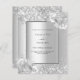 Arrière - plan à l'aspect argent faux décoré de fleurs, fleurs et parties scintillant faux argent, scintille. Personnalisez et ajoutez vos noms et les détails de votre fête. Lettres noires. 1 feuille = 1 invite imprimé bord à bord.