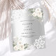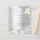 Pour un 25ème anniversaire de mariage élégant et romantique. Un faux arrière - plan argenté décoré de fleurs blanches, de roses et de dentelle blanche. Personnalisez et ajoutez vos noms et détails. 1 feuille = 1 invite imprimé bord à bord.