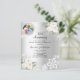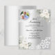 Pour un 25ème anniversaire de mariage élégant et romantique. Un faux arrière - plan argenté décoré de fleurs blanches, de roses et de dentelle blanche. Personnalisez et ajoutez votre photo, vos noms et vos détails. 1 feuille = 1 invite imprimé bord à bord.