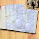 Papier blanc arrière - plan hydrangée bleu. Utilisez pour imprimer vos propres invitations, programmes de mariage, ou des notes de remerciement, ou utilisez comme papier à morceau et l'artisanat. Choisissez une taille et un type de papier selon vos besoins. De jolies fleurs bleues claires aux centres jaunes et blancs recouvrent les deux côtés.