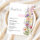 Arrière - plan blanc, avec une grande croix rose ornée de fleurs roses et violettes. Personnalisez et ajoutez le nom et les détails. 1 feuille = 1 invite imprimé bord à bord.