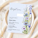 Arrière - plan bleu clair, avec une grande croix blanche décorée de fleurs bleues. Personnalisez et ajoutez le nom et les détails. 1 feuille = 1 invite imprimé bord à bord.