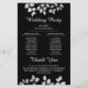 Élégant et élégant programme de mariage à la frontière argentée florale, avec un design charmant. Le texte peut être personnalisé pour votre jour de mariage, anniversaire ou tout type de célébration.