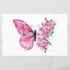 Flower arrangement of pink butterfly with rose Japanese cherry blossoms on white background.