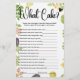 Fresh Off the Market What Cake Game | Activité de devis de Fêtes des mariées sucrées Servez-vous un peu de douceur et amusez-vous avec notre jeu de Fête des mariées "Fresh Off The Market"! Ce jeu de charme est un complément enchanteur à votre marché agricole, jardin, ou douche nuptiale à thème rustique, avec les mêmes beaux produits dessinés à la main et les motifs floraux aquarelles trouvés dans toute la collection. Dans ce jeu de devinettes, les clients sont invités à prédire les détails du futur gâteau mariage ! Donnez-leur des invites pour deviner la saveur, le nombre de niveaux, le type de givrage, le style de décoration, ou tout autre détail amusant sur le gâteau que le couple heureux choisira. C'est une belle façon d'amener les clients à réfléchir à la grande journée et partager l'excitation. La carte de jeu "What Cake" offre un espace clair et attrayant pour les invités à noter leurs devis. Il sert à la fois d'activité divertissante pendant la douche et d'un doux gardien pour la mariée de voir ce que tout le monde prédit. Ce jeu est parfait pour divertir les clients pendant des moments plus tranquilles ou pour s'installer en tant que station d'activités dédiée. Coordonnez-le sans effort avec d'autres articles de notre collection "Fresh Off The Market", comme des invitations, des panneaux et des étiquettes de remerciement, pour une célébration cohésive et délicieusement thématique. Personnalisez facilement la carte de jeu en ajoutant le nom de la mariée, la date de l'événement, ou en customisant les invites de devinette pour s'adapter au style du couple. Disponible sur des cartes premium ou en téléchargement numérique instantané. Cliquez sur "Customiser maintenant" pour créer vos cartes de jeu Fresh Off the Market What Cake et ajouter une activité unique, douce et mémorable à votre douche nuptiale! ce jeu de douche nuptiale de gâteau, jeu de devinette de gâteau mariage, activité de douche nuptiale de marché, jeu de gâteau mariage rustique, jeu de nuptiale de jardin, jeu de douche nuptiale, carte de devis à imprimer idée de jeu mariage