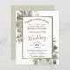 Ces invitations de mariage abordables et abordables sont le choix parfait pour la classe, le style et la beauté sur un budget. L'élégant design présente des feuilles d'eucalyptus peints à la main et des branches de pin dans des tons de sauge et d'or muets. La typographie comporte une calligraphie de script sophistiquée, et il y a une belle bordure en faux feuille d'or. Merveilleuse façon d'invitation vos amis et votre famille pour partager votre joie dans votre journée spéciale sans casser la banque.
