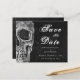 Tête de crâne gothique Enregistrer la date vintage noir et blanc Hallomariage carte à plat budget faire-part de mariage. Amusant, éffrayant Halloween goth Jusqu'à la mort Do Us Part script. Copyright de l'image Marg Seregelyi Photography.