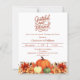Un arrière - plan blanc. Décoré de fleurs citrouilles et orange et jaune. Personnalisez et ajoutez les détails de la fête. Texte : Grateful and Blessed. 1 feuille = 1 invite imprimé bord à bord.