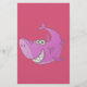 Un requin rose caricature avec un grand sourire et de grandes dents.
