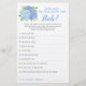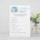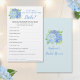 Cette carte de jeu de douche nuptiale est Comment connaissez-vous bien la mariée? Il a 10 questions auxquelles les joueurs peuvent répondre. Le design comprend des fleurs d'hydrangée bleu aquarelle. Personnalisez le dos des cartes avec le nom de la mariée. Produits correspondants disponibles.