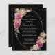 Des pivoines roses et des bourgeons de rose blanche créent deux arrangements floraux boho rustiques sur un cadre ovale or fin élégant. Un petit bouquet fleuri se trouve à l'arrière de l'invitation. Tout le texte peut être modifié.