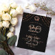 Un arrière - plan noir décoré d'étoiles dorées roses et d'un casquette. Personnalisez et ajoutez un nom, une année et des détails de fête. Le texte Graduation et le nom sont écrits avec un script de style à la main moderne. 1 feuille = 1 invite imprimé bord à bord.