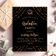 Un arrière - plan noir décoré d'étoiles dorées roses et d'un casquette. Personnalisez et ajoutez un nom, les détails de la fête et l'année. Le texte Graduation et le nom sont écrits avec un script de style à la main moderne. 1 feuille = 1 invite imprimé bord à bord.