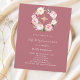 Un élégant arrière - plan d'or rose, décoré de fleurs roses et blanches aquarellées dans une couronne et une croix dorée. Personnalisez et ajoutez un nom et des détails. Texte blanc. 1 feuille = 1 invite imprimé bord à bord.