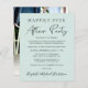 Étage vert menthe à petit prix ou faire-part de mariage privé et réception de mariage ou invitation de fête. Le devant présente "Happily Ever After Party" dans une simple typographie et un script moderne, votre faire-part de mariage et d'invitation et vos noms dans un script signature. Au verso, vous trouverez votre photo de mariage préférée, vos prénoms et votre date de mariage.