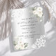 Pour une mariage élégante et romantique. Un arrière - plan à l'aspect faux argenté décoré de fleurs blanches, d'ivoire, de roses et de dentelle blanche. Personnalisez et ajoutez vos noms et détails. 1 feuille = 1 invite imprimé bord à bord.