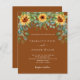 Arrière - plan de couleur brun brun brun décoré de tournesols, de verdure d'eucalyptus. Personnalisez et ajoutez vos noms et les détails de votre fête. 1 feuille = 1 invite imprimé bord à bord.