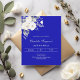 Pour une soirée d'hiver élégante. Un arrière - plan bleu royal décoré de fleurs blanches, rose. Personnalisez et ajoutez votre nom et vos détails. 1 feuille = 1 invite imprimé bord à bord.