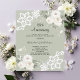 Pour un 25ème anniversaire de mariage élégant et romantique. Un arrière - plan vert sage décoré de fleurs blanches, rose et dentelle blanche. Personnalisez et ajoutez vos noms et détails. 1 feuille = 1 invite imprimé bord à bord.