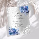 Pour un 25ème anniversaire de mariage élégant et romantique. Un arrière - plan à l'aspect faux argenté décoré de fleurs bleues, de roses et de dentelle blanche. Personnalisez et ajoutez vos noms et détails. 1 feuille = 1 invite imprimé bord à bord.