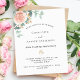 Un arrière - plan blanc chic. Décoré d'or rose et de fleurs roses rousses, de fleurs roses et de feuilles d'eucalyptus vert aquarellés, de sprigs, de verdure et d'une fausse feuille d'or. Personnalisez et ajoutez vos noms et les détails. Lettres noires et vertes. 1 feuille = 1 invite imprimé bord à bord.
