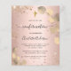 Un arrière - plan d'or rose et roux décoré de végétation d'eucalyptus et de poussière de parties scintillant. Personnalisez et un nom et des détails de la cérémonie. Lettres de couleur noire.