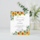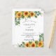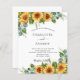 Un arrière - plan blanc décoré de tournesols, de verdure d'eucalyptus. Personnalisez et ajoutez vos noms et les détails de votre fête.