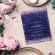 Une invitation moderne, élégante et glamour pour une fête d'anniversaire de 21e (ou tout âge). Arrière - plan bleu marine, décorée de confettis roses. La couleur bleue est inégale. Personnalisez et ajoutez votre nom et les détails de votre fête.