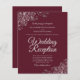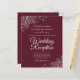 Ces invitations de mariage abordables et abordables sont le choix parfait pour la classe, le style et la beauté sur un budget. Conçus pour les invités qui sont invités à la réception mais pas à la cérémonie, ils présentent un arrière - plan bordeaux, marron ou rouge vif avec des garnitures en dentelle argentée ornée dans les coins. La typographie comprend des lettres de script gris pâle fantaisie pour un style à la fois simple et élégant. Merveilleuse façon d'invitation vos amis et votre famille pour partager votre joie dans votre journée spéciale sans casser la banque.