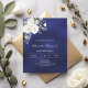 Pour une soirée d'hiver élégante. Un bleu marine, un arrière - plan de couleur irrégulière décoré de fleurs blanches, rose. Personnalisez et ajoutez votre nom et vos détails. 1 feuille = 1 invite imprimé bord à bord.