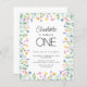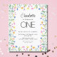 Cette jolie invitation à fêter son premier anniversaire à petit budget est décorée de fleurs sauvages délicats dessinés à la main dans les tons pastel. Facile à personnaliser. Utilisez l'outil de conception pour modifier la taille, le style ou la couleur du texte. Vous ne trouverez pas cette image exacte d'autres designers pendant que nous créons notre oeuvre. Dessin original © Michele Davies.