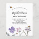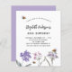 Un arrière - plan blanc. Décoré d'abeilles et de fleurs sauvages peints dans le violet et le rose. Personnalisez et ajoutez un nom et des détails du parti.