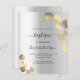 Une invitation de baptême moderne et élégante, neutre en termes de genre. Fond métallisé argenté faux décoré avec des branches d'eucalyptus dorées. Personnalisez et ajoutez un nom et des détails. Lettres de couleur noire.